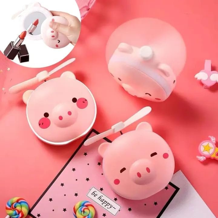 MINI VENTILADOR Y ESPEJO LED DE PALTITA Y CERDITO